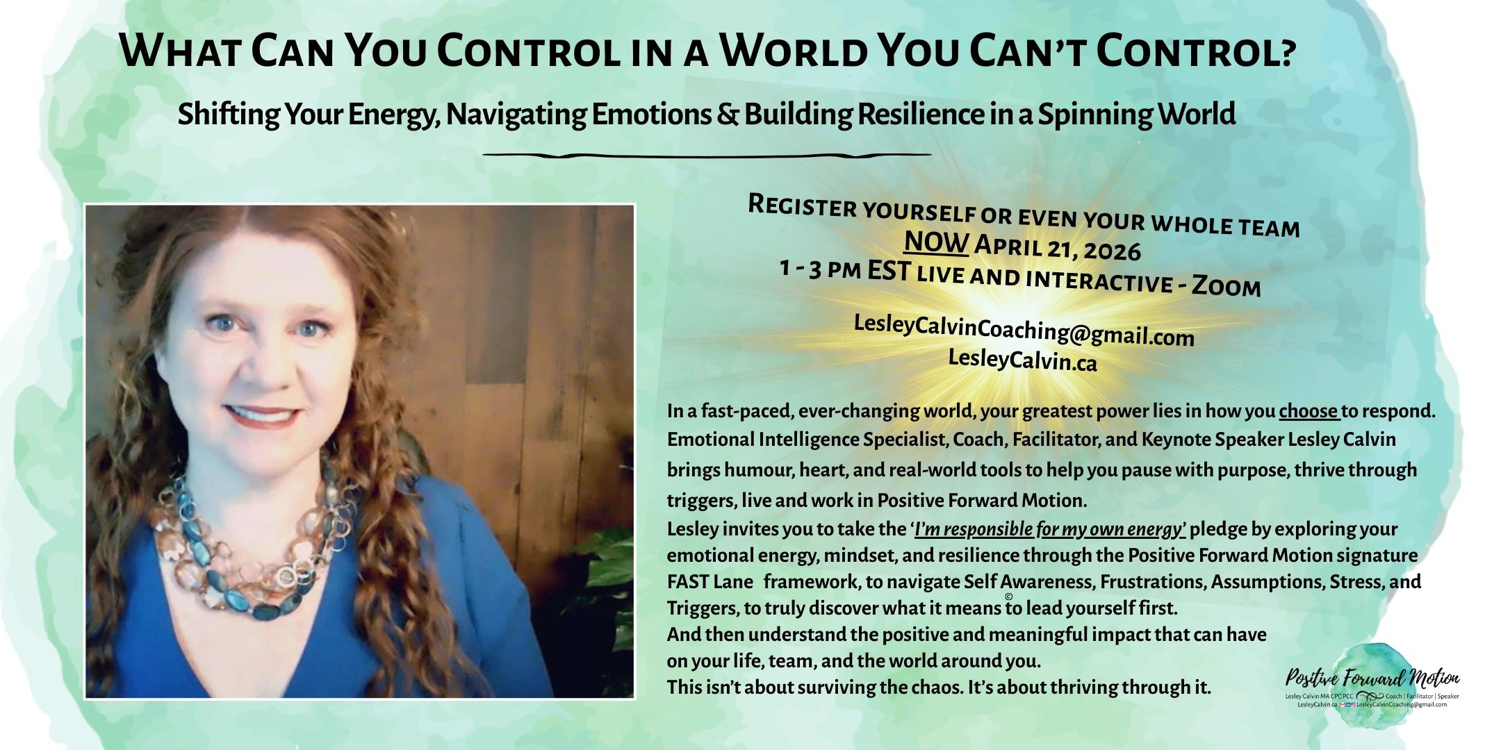 In this inspiring, high-impact keynote, Emotional Intelligence Specialist and Leadership Coach Lesley Calvin challenges audiences to rethink their influence, reconnect with what matters most, and take ownership of their energy even in the most chaotic times.